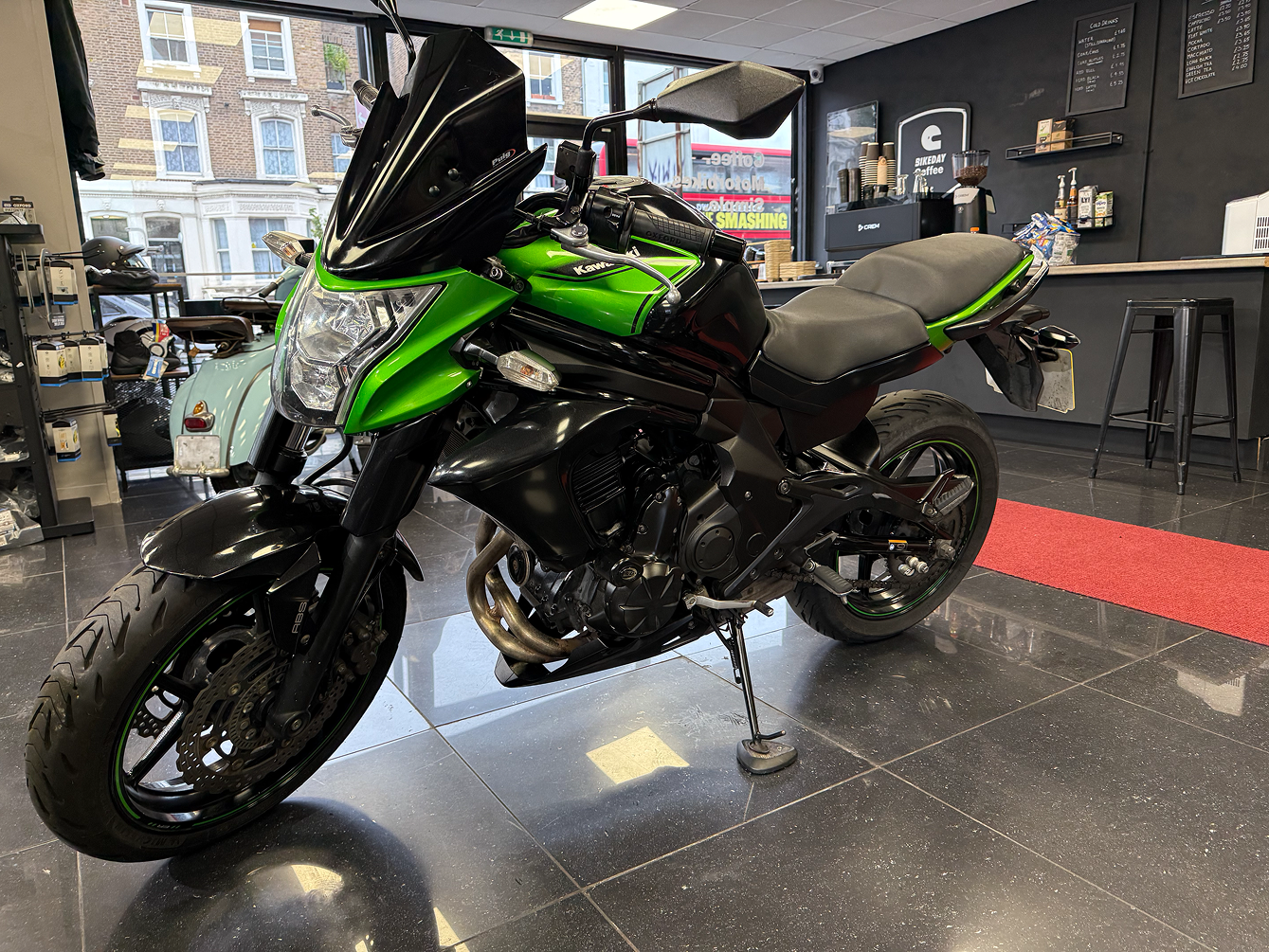 Incredible Kawasaki ER-6N 650 ABS in Kawasaki Green & A2 Suitable - MOT until 2nd June 2026 & 3 months warranty. Fully serviced, Oxford heated grips, R&G crash bungs, Michelin Road 5 tyres, 19804 miles. The bike is CAT D after superficial damage but is now in beautiful and OEM condition. ZERO structural damage. Amazingly priced bike. Comes with 3 keys and just 3 previous keepers.